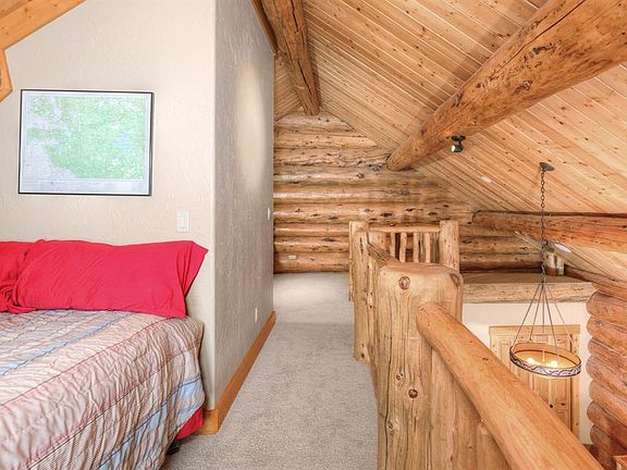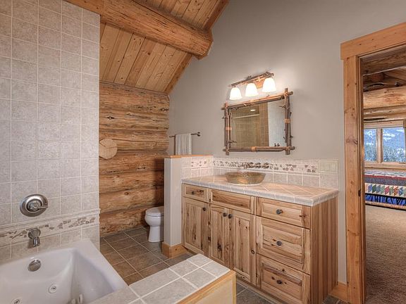 Beautifully situated hand hewn log home located 1 mile from the town center. Gourmet kitchen with wet bar, dining and great room with fireplace looking out at Lone Peak on main level and full bar with wine cellar and theater room, family room and fireplace. Fully furnished 6 bedrooms. Perfect for entertaining - this gorgeous log home is the epitome of Montana living.