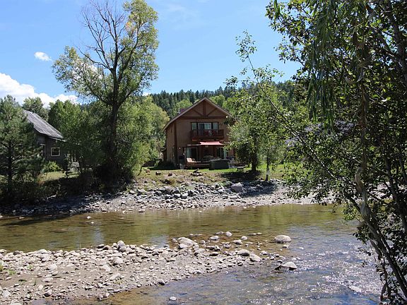 The ideal RIVER FRONT Home in the highly sought after San Juan River Resort located just 15 minutes from downtown and 30 minutes from Wolf Creek Ski Resort - as good as it gets. There are little custom details through out this home including the smiling fish that is in the concrete stone entrance to welcome you as you walk up. This Custom 3 bedroom home is approx. 2500 sq ft with an open floorplan T&G Ceilings and a floor to ceiling gas river rock fireplace with sliding glass doors on either side. These open to the fabulous deck that leads right into the San Juan River....just amazing. If you are a fly fishing enthusiast and want Gold Medal fishing or just love relaxing and listening to the river, this is it. Imagine sitting in your jacuzzi at night under the Pagosa stars next to rushing river, there is nothing like it. Hickory flooring, in-floor heat and custom finishes throughout including the playful racoons that are built into the large logs in the kitchen / living room entrance...(you'll see). Now ,upstairs there are 2 guest suites both with gas fireplaces and a LARGE master with a fabulous deck that again overlooks the San Juan River, gas fireplace and large master bath with both shower and tub. It's no wonder this is one of the most popular short term rentals in Pagosa, yes SJRR allows STR's. That's not all, as a separate entrance over the garage is a guest suite with full kitchen, big living room, floor to ceiling river rock fireplace and a very private deck to enjoy evening with a glass of your favorite something while taking in the sounds and sights of the river. With this it makes this home over 3052 sq ft in total. This area also offers a wonderful area for the family to take an evening stroll and perhaps take the kids or grand kids to the Pond to sit by the bank and fish. It's catch and release, or just practice your casting. This is exclusive for the use of only those that own or rent while at San Juan River Resorts. This home is so inviting and in such a great area . There are very few river front homes out there so make sure this is on your list, you'll be glad you did!