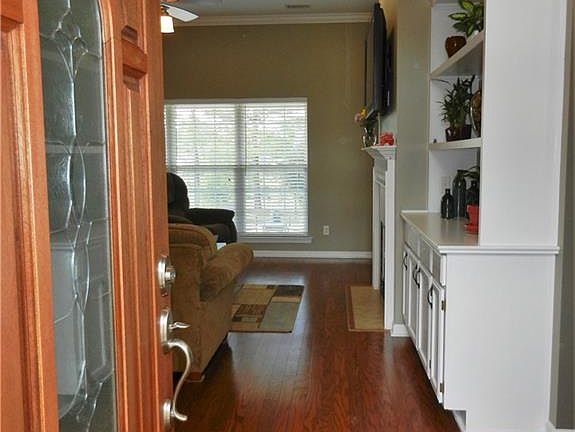 This immaculately maintained & highly upgraded all brick home in Highland Falls, lives all on one level. Featuring hardwood floors in all living areas, spray foam insulation, crown molding in living areas & bedrooms, a granite & stainless kitchen and much more. The Great Room has high ceilings and a gas fireplace, the dining room adjoins and also communicates with the kitchen & breakfast room. The cook's kitchen has plenty of hardwood cabinets, rich granite counters including a breakfast bar tile backsplash & walk-in pantry The main living areas overlook a covered porch, a fenced rear yard, lagoon & wooded area. The master bedroom has an ensuite bath featuring dual vanities separate shower & a whirlpool tub. His & hers closets complete the package. Three additional bedrooms each have a large closet; one has 10 ft. ceilings & display ledges making for a cheery interior. The covered porch leads to a large patio area, fresh landscaping surrounds the home and there is also a garden area.