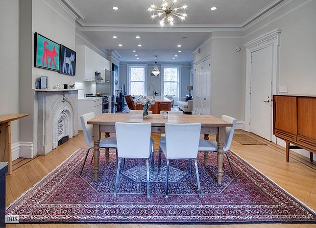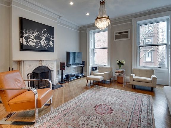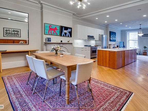 This is what Brooklyn Heights is all about. An entire floor in an elegant brownstone majestically situated at the foot of the Brooklyn Heights Promenade. This open and airy two bedroom encompasses the entire floor of this historic townhouse. It features ten and ½ foot ceilings, beautiful oak hardwood floors with walnut borders, 3 fireplaces (1 wood-burning, 2 decorative) all with beautiful mantels. The recently renovated island kitchen features Calacatta marble countertops and hand crafted cabinetry . When only the best stainless steel appliances will do, there is a vented Bertazonni range, Liebherr refrigerator, Miele dishwasher and a Bosch washer/dryer. The oversized north and south facing windows ensure that the apartment is flooded with light and cross breezes. The large master bedroom is separated from the living area by original wood pocket doors. There is a dressing area off this bedroom with two large closets. The bathroom has an original stained glass window, a marble mosaic floor, an antique marble sink with brass fixtures plus a freestanding cast iron tub with high quality antique hardware. The second bedroom also has a large floor to ceiling closet. The maintenance is only $800 per month. This spacious and elegant floor in this well maintained brownstone is your dream home!