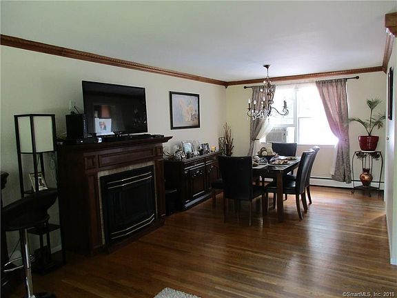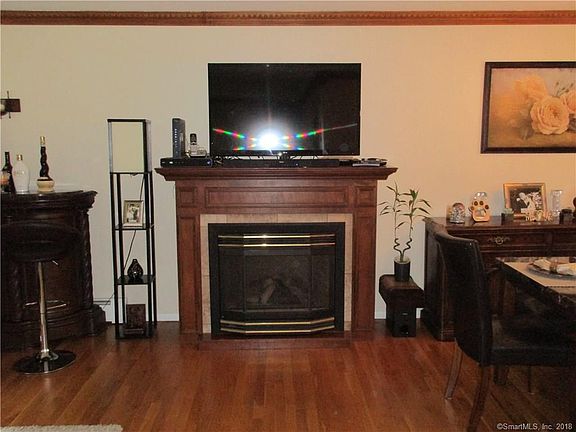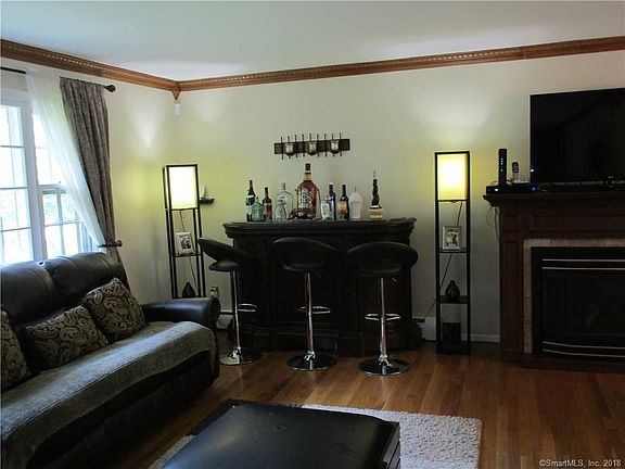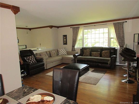 Chimney Heights Raised Ranch, Beautiful level lot, New Roof, 3 Bedrooms, 1 1/2 baths. Updated kitchen with breakfast bar & Gas Range. Nice size Dining rm. Living rm with gas log fireplace both with Hardwood floors and crown moldings. 3 Spacious bedrooms all with Hardwood floors and ceiling fans. Lower level Family rm with cozy wood burning fireplace and 1/2 bath. Beautiful level wooded lot. Private level backyard with above ground Pool. Great neighborhood for relaxing walks and bike riding. Flat driveway, Easy access to I-84 & down county commutes. Close to shopping. Connected to town sewers.