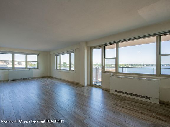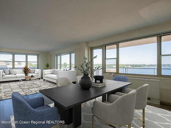 Located with direct, breathtaking, panoramic views of the beautiful Navesink River, this 2 bedroom, 2 bath unit, inspires a lifestyle with privacy, activity and security. The recently renovated building in trendy Red Bank, has a heated pool overlooking the Navesink along with a new pool house, deck, fire pit and grilling area. Other amenities include a 24 hour concierge, a well equipped gym and impeccable laundry room. HOA fee INCLUDES: taxes, heat, one underground parking spot, gas cooking, sewer, water and more! This unit is conveniently located on the first floor, one floor up from the lobby. Two elevators are nearby or take the stairs, no problem. Marina available at 1st come basis; building is pet friendly.
