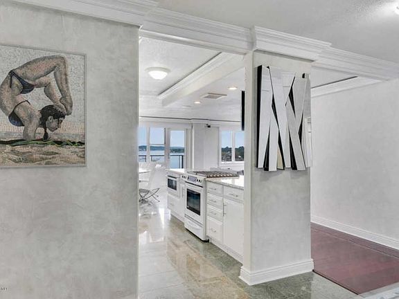 SUN-FLOODED 2 bed/2 bath luxury high-rise in desirable Riverside Towers. Fully renovated in 2014, this one of a kind apartment extends the quality you expect of city life to the shores of Red Bank with upgrades such as Santos mahogany engineered wood floors, Plus granite floors, Vetrazzo countertops, thoughtful open floor plan, custom lighting, sound-proofing, and state of the art kitchen. Boasts soaring views of Navesink River's gorgeous sunrise from master bedroom and sunset off balcony/living room. Enjoy every comfort in prime location of downtown Red Bank amidst top nightlife, restaurants, shopping, and minutes from ferry/train/bus. Quiet and private full-service cooperative has 24hr concierge, underground garage, waterfront pool, private dock, laundry