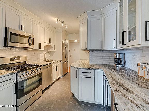 Gorgeous one bedroom unit in The Navesink-a coveted waterfront Red Bank high rise & community. Walking distance to downtown & a fabulous lifestyle awaits with the many amenities. The new fabulous waterfront pool & clubhouse are located on the River overlooking the Marina. One of the best views the area has to offer! In the unit you can see the river from the balcony. This recently renovated unit features an upgraded extended kitchen w gorgeous ivory wood cabinets to the ceiling w moldings & designer hardware. The granite counters are so chic w a ''leather finish''. The ss appliances even include a wine fridge! The whole unit has real wood parquet flooring in excellent condition. The bathroom has been fully upgraded w an oversized tub & designer tile. The vanity & mirror complete the color scheme. The Primary bedroom is large w double closets. Double closets in the hall as well. This stunning home won't last! Schedule your showing today.