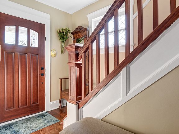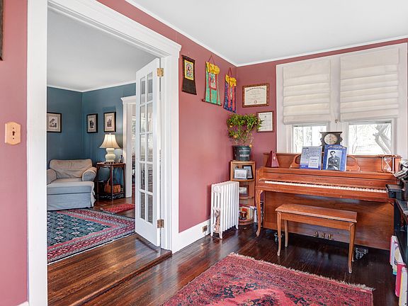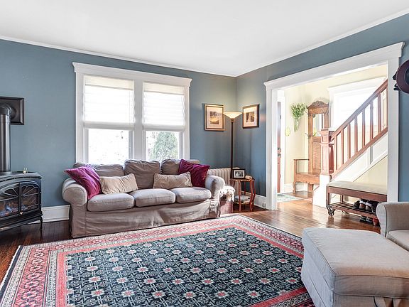 This recently renovated three bedroom, 2 full and one-half bath Side hall Colonial, w fine features offers plenty of room! Located on a fabulous tree lined street w plenty of sidewalks, this gem sits on a 53x414 acre level lot, almost half an acre of land! Features include an inviting front entry, w original stained glass window and period balustrade, that opens to a formal living room w a custom mural painted by Susan Dwyer Leach after Rufus Porter, a 19th century New England muralist. The custom mural features Morris County landmarks such as Jockey Hollow and Washington's headquarters. A new gourmet eat-in kitchen w professional stainless-steel appliances that includes a six-burner range, 2-inch walnut center island, black Soapstone counters, wine fridge and undercounter lighting that opens to a dining area w new chandelier and adjoins the family room w gas fireplace, custom built-ins, and glass French Doors w views of the deck and backyard. A primary bedroom suite w tray ceiling offers two walk-in closets and spa-like luxurious bath that features heated flooring, double vanity with custom cabinetry and an oversized rain shower w marble and mosaic tile. The expansive yard features a custom 5x5 ft firepit. Other amenities include first floor office, new 5 inch red oak hardwood floors, HVAC system, hardwired Nest system, custom blinds, water softener and filtration system, French Drain, 200 amp electrical, classic moldings including wainscoting, deck, 2 car detached garage w new gutters.