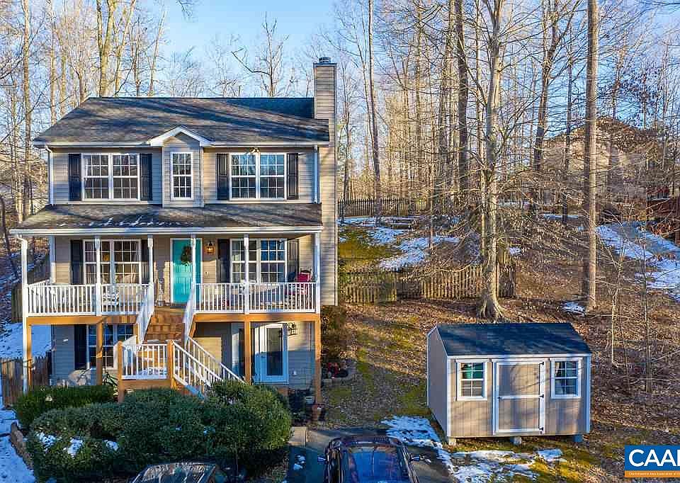 Don't miss this spacious home, located outside of the gate at Lake Monticello! The main level of this home features hardwood floors, ample living space, a gas fireplace and an open kitchen. Upstairs there are three bedrooms and two full baths. The master bedroom features laminate floors, a large bathroom with jetted tub and large master closet. The walkout basement includes a half bath, but plumbing for a shower is roughed in. The ceiling is framed in and awaiting drywall. The outside features a rear deck, partially fenced yard, large front porch, storage shed and ample parking. View the 3D tour!