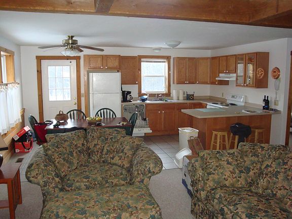 Bear River Lodge - A Winter Retreat on Bear River SKI SUNDAY RIVER 3 bedrooms plus sleeping loft, 3 bathrooms, sleeps up to 10. Bear River Lodge is a private year-round retreat on Bear River, nestled between Sunday River Ski Resort, Bethel Inn Golf Course and Grafton Notch State Park. This 3 bed, 3 bath log-sided cabin features WiFi, stone fireplace with wood stove, fully equipped kitchen, sunny loft, and washer/dryer. The open floor plan includes a master bedroom with en suite bathroom, 2nd bedroom with full-sized bed and an over-sized bunk room with two bunk beds. In addition, the loft area includes 2 full-sized futon couch/beds and a foosball table. The cabin has a covered front deck and a rear deck with grill. Situated on 3 acres, this home offers 2600 sq. ft. of living space and sleeps up to 10. Just 6 miles to Sunday River access road and 20 minutes to Mt. Abram Ski Resort. Bear River Lodge is also just 15 minutes from Bethel village, which offers a variety of local restaurants and pubs. A short drive up Route 26 North is Grafton Notch State Park with the Appalachian Trail & Old Speck Mt, 4th highest Mt in Maine. Enjoy skiing/boarding, snowtubing, snowshoeing or even dog-sledding this winter! The rental opportunity is for February school vacation week (dates available are from Feb 17 through Feb 26th inclusive). Rental rate of $450/night or $3000/week. $1000 security deposit, $250 cleaning fee and 9% ME sales tax also required.