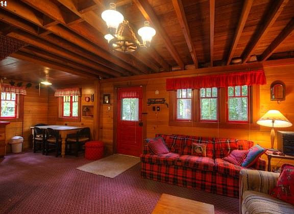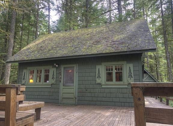 Great location right on the Zig Zag river with parklike setting. Knotty pine cabin originally built in 1925 with original pane windows. Two bedrooms upstairs, one a loft area with multiple beds. Open floor plan on the main level with beamed ceilings. A huge deck with benches all the way around with great views of the river. Just steps to the water and a moss covered area. Outbuilding for storage. Only 15 minutes to slopes. Leased land