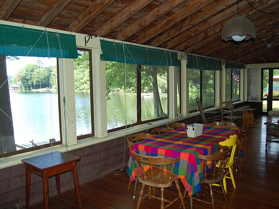 Classic 1920s style New England lakeside cottage on Lake Winnepocket in Webster, N.H. Set among the tall whispering pines, the property boasts 138 feet of lake frontage with a stunning postcard-like view of the water and surrounding hills and mountains. The main cottage features six bedrooms, a fieldstone fireplace, large built-in cabinets and bookcases, southern pine flooring throughout with detailed woodwork and craftsmanship, laundry and mudroom. A long veranda-style screened in porch faces the lake. Also located on the property is a separate bunkhouse, complete with a screened in porch, kitchenette, 3/4 bath and hard wood floors. The property, located on a private road, also has a sandy beach, dock, raft and back deck for grilling. Lake Winnepocket, a 227-acre two-mile long lake nestled in the shadows of Mt. Kearsarge has claim to being one of the cleanest lakes in the state and some of the best bass fishing in the area. Swimming, boating, waterskiing, and kayaking. 30 minutes to Concord. 75 minutes to Boston. New septic and other recent updates.