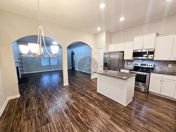 This lovely home, built in 2021 has four bedrooms and two and half baths. Situated in a quiet community with a decorator's touch and rocking chair porch perfect for those GA Fall evenings. The kitchen has stainless-steel appliances and beautiful white cabinets. Flooring through the house on the main level. Very spacious and a lot of room for storage. The Primary/Master Suite is on the main floor! 3 great-sized bedrooms upstairs! Beautiful front porch for relaxing, back yard is fully fenced and gives you full privacy. 2 car garage. Ready for a new resident! House is located in the growing Adairsville area with shopping and dining nearby. Please call or email for more information today! Monthly Rent: $2,100.00 Security Deposit: $2,100.00 Administrative Holding Fee $250.00 All AriStar Property Management residents are enrolled in the Resident Benefits Package (RBP) for $55.00/month which includes liability insurance, credit building to help boost the resident's credit score with timely rent payments, up to $1M Identity Theft Protection, HVAC air filter delivery (for applicable properties), move-in concierge service making utility connection and home service setup a breeze during your move-in, our best-in-class resident rewards program, on-demand pest control, and much more! More details upon application open kitchen and a living room with a charming fireplace.