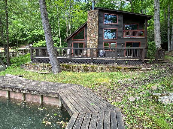 This charming LAKE FRONT cabin is nestled away in a peaceful cove. Offering 2 bedrooms & 2 bathrooms with a loft area for extra sleeping or office space! The level lot provides easy access to the water and a useable yard. Enjoy the glistening water & mountain views from the large deck while listening to the creek running by the house that empties into the lake. An open concept floor plan offers plenty of room to entertain with 2 sliding glass doors that open up to the deck! Cozy up in front of the wood burning fireplace for a relaxing night in, or take a quick drive into downtown Blue Ridge for fabulous dining, shopping & entertainment! This lake front retreat is perfect for full or part-time living! Don't let it slip away!!