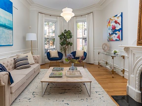 Elegant 3+ bedroom lower triplex on desirable Rutland Square! This grand totally renovated triplex offers a stately parlor level formal living room with classic bow front overlooking the Square, tall ceilings, and a beautifully restored marble mantle fireplace. A well proportioned formal dining space is separated from the large kitchen by restored pocket doors. A brand new kitchen offers top-of-the-line appliances, great counter/work space, abundant storage, full size wine refrigeration and access to a private deck. A street level primary suite has 3 large closets, a chic marble bath with soaking tub and walk in shower. Two additional guest bedrooms each have their own full bath. The lower level family room is complete with large windows overlooking the large private garden, and a fully equipped kitchenette. Abundant storage throughout, gleaming hardwood floors, two private entrances (one with a mud room). A large private patio offers direct access to 1 full deeded parking space!
