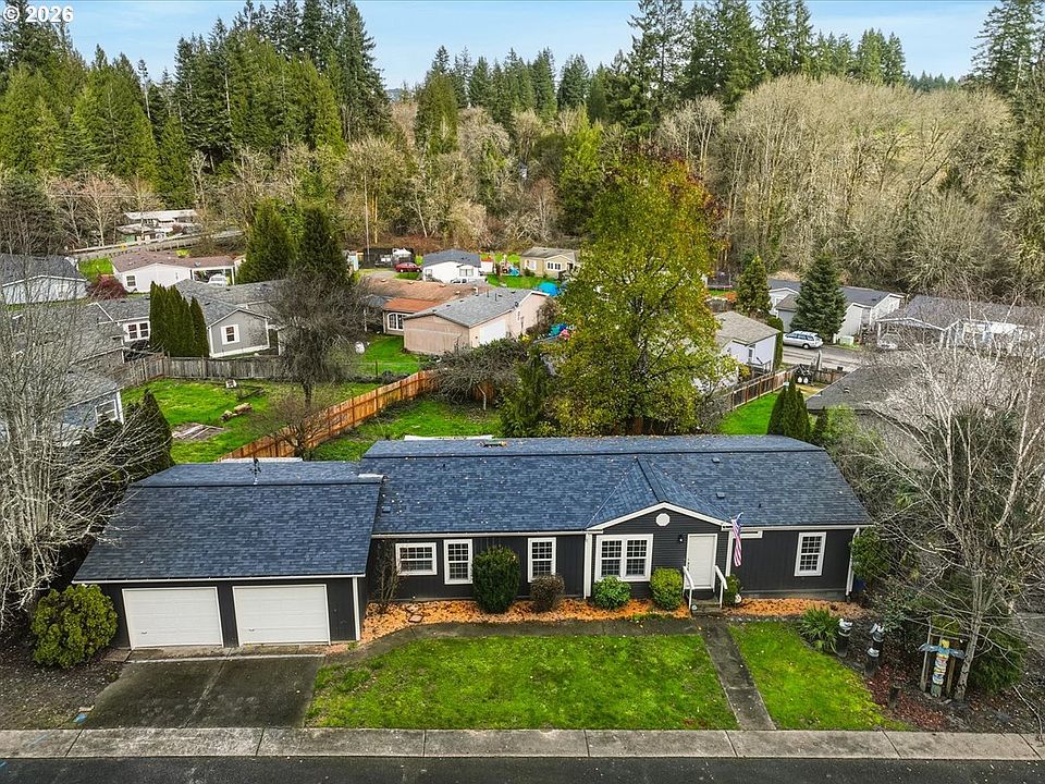 Desirable Ridgefield location just minutes to shopping, restaurants, Costco, and easy freeway access. This spacious ranch-style home, built in 1995 with recent updates, offers 3 bedrooms, 2 baths, and two bonus rooms providing flexible living space. Situated on a hard-to-find, nearly quarter-acre owned fenced lot—no space rent and no HOA dues. From the moment you enter, you’ll appreciate the open, spacious feel. The vaulted living room flows into the formal dining room and kitchen and features new laminate flooring. The light and bright kitchen offers a vaulted ceiling with skylight, abundant cabinet and counter space, a pantry, and a casual eating area. Updated stainless steel appliances are included, along with the refrigerator. The king-sized primary bedroom features newer laminate flooring and an ensuite bath with a soaking tub and separate shower. The conveniently located utility room includes storage cabinets and a washer and dryer are both included. The oversized, extra-deep two-car garage includes two bonus rooms—ideal for hobbies, a workshop, or flex space—or remove them to enjoy approximately 700 square feet of garage space. An additional parking pad provides extra parking. A wheelchair ramp from the garage to the home enhances accessibility. The private, fenced backyard includes a storage shed and ample room for gardening or outdoor activities. Backyard decks have covered outdoor enclosures for dogs or cats with access to pet doors inside the home. A quiet, low-traffic loop adds to the neighborhood’s privacy. Don't miss out on this great opportunity to call home. OPEN HOUSE TODAY (1/23) 3-5PM