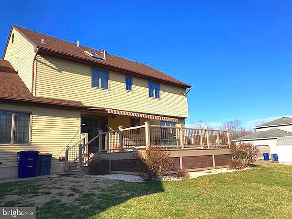 Gorgeous house. Come home and relax on your spacious beautiful deck with an electric awning and enjoy the soothing surroundings with a serene pond and expansive lawn. The exterior of the home has stamped concrete walkways. Inside this beautiful home are 4 bedrooms and 3 and a half bathrooms. The master bedroom boasts a jacuzzi, shower, a walk-in closet and a sitting room. There are 3 more bedrooms and a full bathroom to complete the second story. All the bedrooms have ceiling fans. There are pull down stairs for the attic. Downstairs walk into the spacious tiled floor foyer that leads to the kitchen, dining room, formal living room and family room. The family room has a beautiful wood burning fireplace. Hardwood floors throughout and a central vacuum system. There is a partially finished basement with a bathroom and workshop. Bilco doors provide easy access to the outdoors. There is an attached 2 car garage with additional parking for 9-10 cars in driveway. A large detached garage featuring 768 square feet with electric, a loft and space for 2 cars. There is also a separate utility shed for storage. All of this on almost 2 acres of tranquility. This home is located central to Philadelphia, New York, Princeton, and the Jersey Shore. Nearby are numerous fine restaurants, parks, trails and charming shops. Property being sold in as is condition