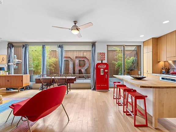Welcome to your lightly lived in, 1 owner home in the vibrant Kerns neighborhood! Unit 203 offers a unique living experience with a highly coveted 15' X 30' private patio - only 1 of 4 in the building! This comfortable 1 Bedroom/1 Bathroom features high-ceilings with floor-to-ceiling windows, white oak floors & cabinets + a Chef’s Kitchen with pantry & eat-at island. Spacious living spaces & spa like Bathroom with deep soaking tub & tile surround. Tons of extra storage throughout + In-unit washer/dryer. But wait, don’t miss the secure designated parking in the garage + bike storage & your own personal 7' x 8' climate-controlled storage unit in the basement. Rich in history, the Sunrose building was developed by the Wong Family with an eco-friendly design by Holst Architecture. Community driven, small secure complex of 32 modern, hi-efficiency flats are perfectly perched above Portland’s Restaurant Row. Outside your front door you will be greeted with award winning Restaurants, Boutiques, Theater, Whole Foods, Laurelhurst Park & of course Coffee Shops! It is no surprise that it has a Walk Score of 96 & Bike Score of 95 – Use as a pied-a-terre (easy to lock & leave) OR full time living, either way you won’t be disappointed!