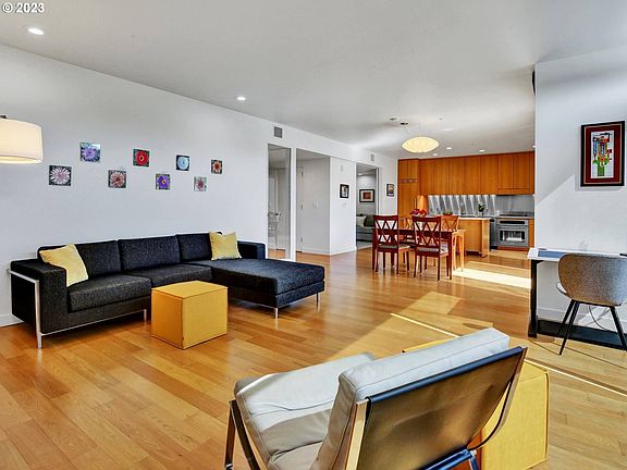 Modern / Urban living at its finest in the hip & cool Kerns neighborhood. A mere stroll to Whole Foods, Laurelhurst Park and an array of wonderful eateries, craft coffee, theatre and ice cream!. Peaceful unit on top floor with views of sunrises and rainbows. Outdoor covered patio. Spacious and open floor plan with white oak hardwoods, plus cork flooring in bedrooms. Lovely chef's kitchen with large island and built-in appliances. Newly remodeled primary bathroom with walk-in shower. Newer washer/dryer included. Attached secure garage with deeded parking space and climate controlled storage unit. Welcome Home!