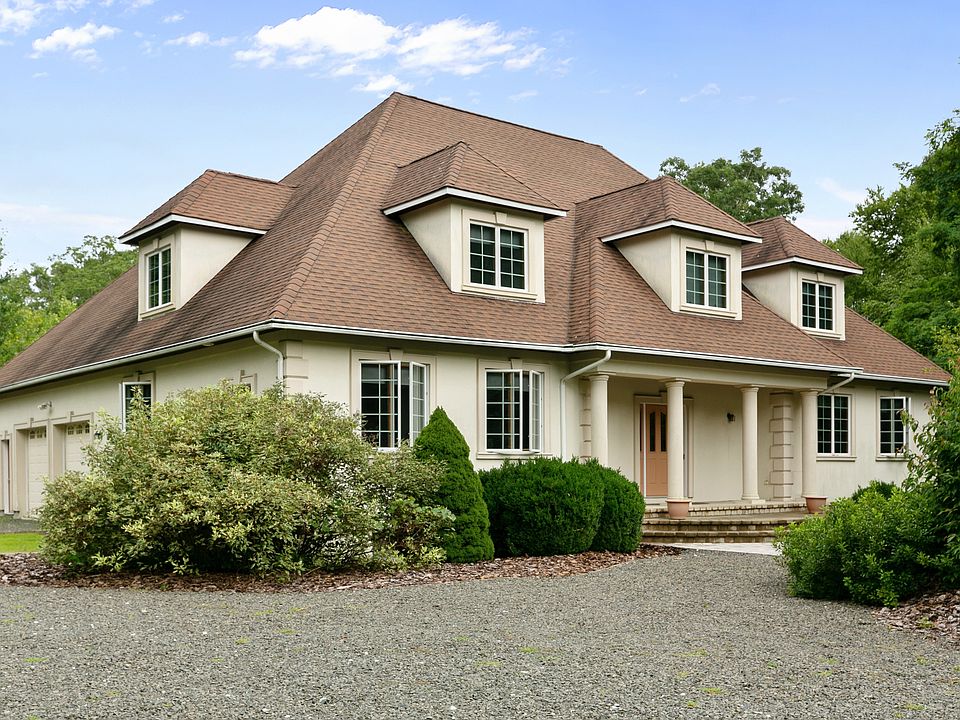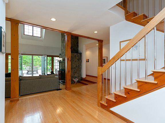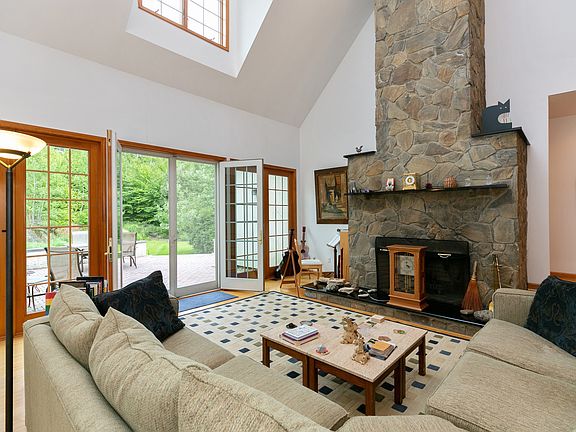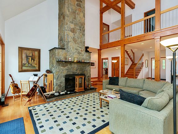 PARADISE FOUND! This stylish, incredible and expansive 3 bedroom masterpiece (w/ additional room, office) on a private cul-de-sac has many incredible & unique features: a 2-step sunken living room with a stone fireplace that runs up to the vaulted ceilings, pristine wood beams across the ceilings, impeccable HW floors throughout, a finished basement w/ custom knotted-wood pine throughout, a theater room w/ projector and built-in shelves, a huge workshop, a roughed room for potential bath and more. The upper floor features 2 large bedrooms on each end of the house, a blue ceramic tile full bath, a catwalk gazing over the main floor/living room and a walk-in attic. Storage galore! The expansive master bedroom boasts dual walk-in closets and a bath suite w/ separate shower/jacuzzi tub. The custom kitchen boasts deep black granite counters, a Verona stove, ceramic tile floor and a huge mudroom leading to the driveway (perfect for carrying the groceries in). The exterior is lush & private.