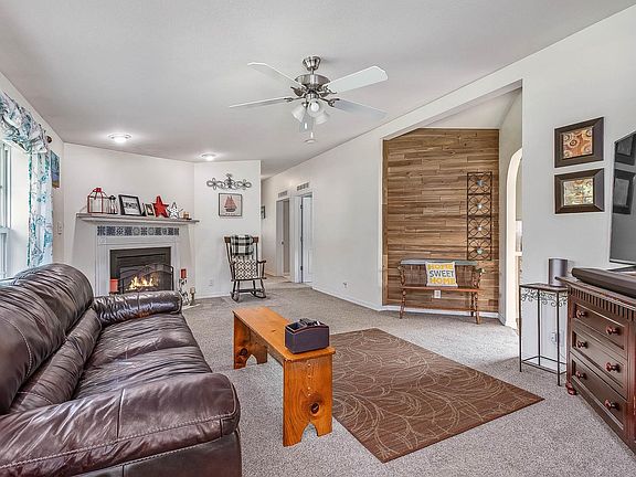 This spacious 2004 mobile home sits on a large lot within a well-developed mobile home community. With three bedrooms, a gas fireplace, central AC, and a host of other desirable features, this property is a fantastic opportunity for those seeking a tranquil and low maintenance home. Enter through the covered porch and into the living room where a cozy gas fireplace graces the open living area. The well-appointed kitchen is right off of the living room and is equipped with a kitchen island, dining space and ample sunlight through it's many windows and new skylights. The kitchen connects to an office space or additional living space and back to the main living room again. The primary bedroom is just down the hall and features a generous en-suite bathroom and a walk-in closet for ample storage. Two additional bedrooms offer versatility for guests or a home office. A designated laundry room adds practicality to your daily routine. Outside, the expansive lot is perfect for gardening, play, or relaxation, with a convenient storage shed for your tools and equipment. Don't miss the chance to make this delightful mobile home your own!