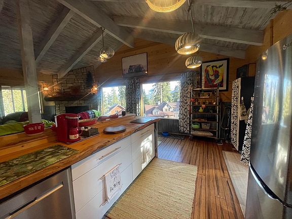 Cutest cabin/home ever! This home has been totally renovated, down to the studs. New windows, new floors, plank walls, corrugated metal. Industrial style fans in upstairs living area. Custom woodwork by local artist. Custom ironwork on staircases. Located in the coveted Mammoth Knolls neighborhood, bordering forest service land. Close to the Village with the gondola to Canyon Lodge and shuttle to Main Lodge and around town. This 3 bedroom / 2 bath home gets great sun and provides expansive views. Snowmobile and cross-country ski right outside your door into the forest. Enjoy a large peaceful deck and enjoy mountain views while sitting in the forest. This home has 2 1/2 storage areas, a laundry closet on the deck and charm galore. Sold partially furnished. This is a fun & happy house - a perfect mountain retreat for all 4 seasons!