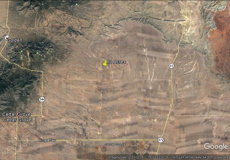 80 Acres of pasture land east of Cedar Grove. Easy access to Edgewood or North 14 with a convenient commute to Alb. or Santa Fe. Great views of the San Pedro and Sandia Mountains. Electric along the south boundary of the property.Survey is complete and corners easily visible.