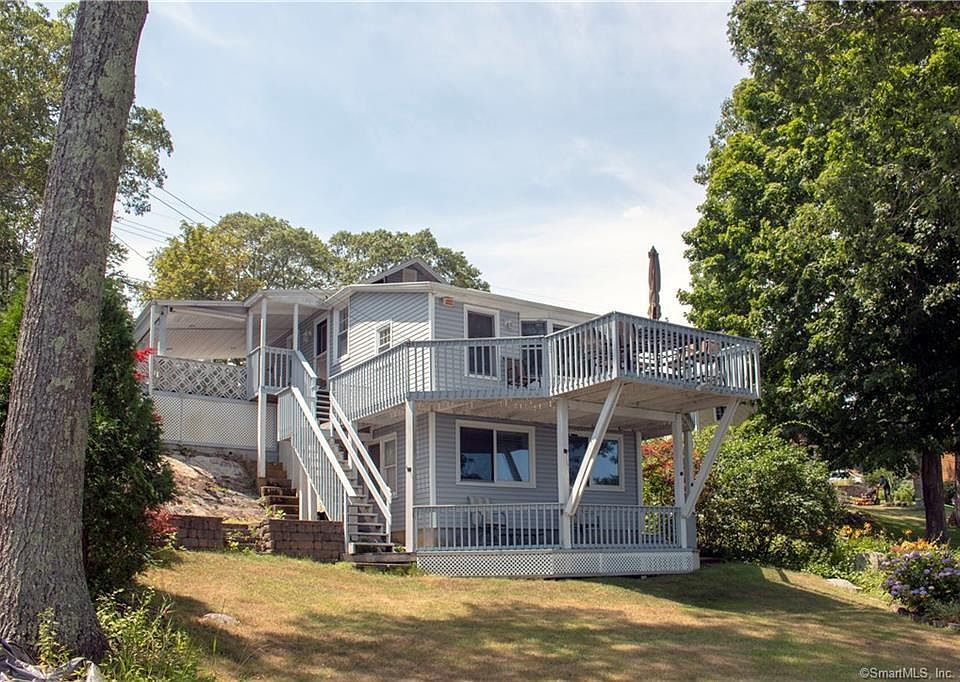 Waterfront, Year Round 3 bedroom Home full of light with Spectacular views of Long Island Sound and neighboring shorelines. Located in the prestigious, guarded beach community of Point O Woods which offers private beach, boardwalk, tennis, basketball, pavilion, and marina. Public water and sewer connected. Featuring newly remodeled bathroom, 1,092 sq ft of living space with views from almost every room, 540 sq ft upper deck & covered lower deck facing the water as well as a 240 sq ft covered front patio. Waterfront property with no flood insurance required. Off Street parking for 5 cars.
