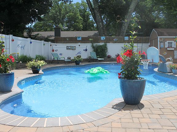 Your DREAM entertainment backyard! This home has it all. Beautifully landscaped front yard adds to the sporty days of summer spent in this private lake community. This immaculate 1,980 SF sits on a .5 acre corner lot of quaint privacy. This bright and airy home boasts many upgraded features: bathrms, molding and doors, windows, sliders, electrical, roof, recessed lighting, hardwood floors and tile. Step outside the sliders and be ready to entertain. Privacy enclosed vinyl fencing surrounds your backyard paradise. Raised deck, paver patios, walks and gazebo surround a beautiful heated salt water pool. Plenty of pool and yard storage await the 2 sheds out back.