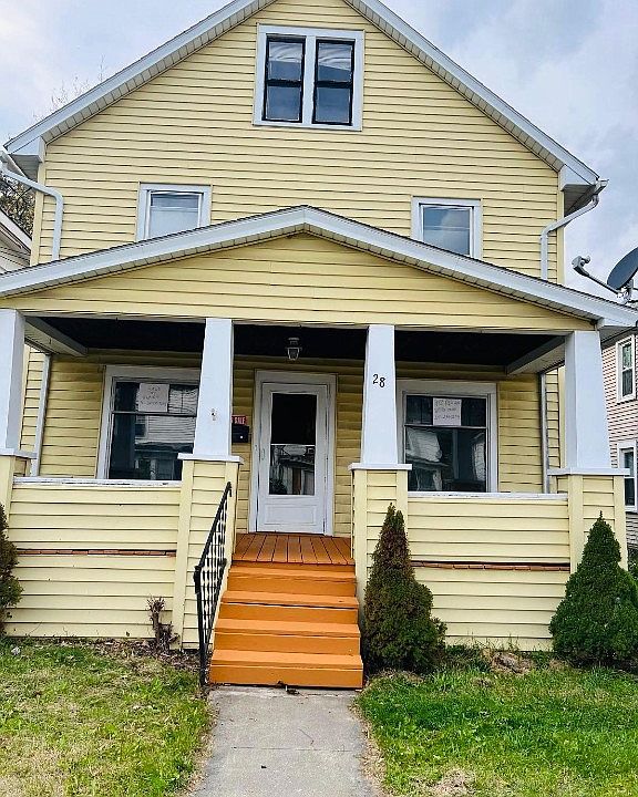 It's a solid two-story house featuring 3 bedrooms and 1 bath. The house boasts hardwood floors, central air, and a fireplace with an electric insert in the living room. It has some updates in the kitchen, floor and bath, a newer water heater, and an unfinished walk-up attic. The property includes a nice level yard and a 1-car garage.