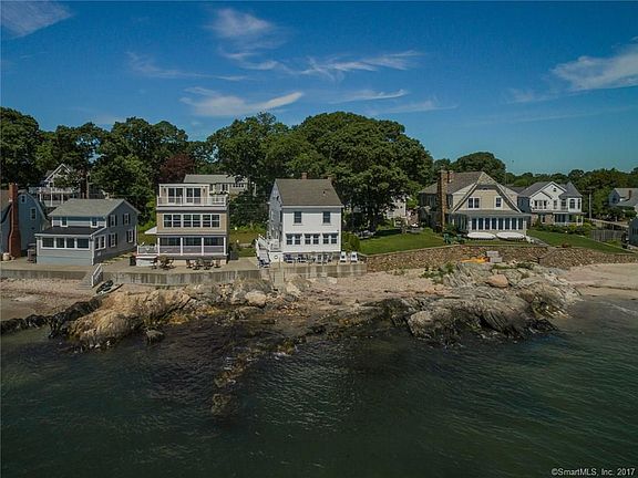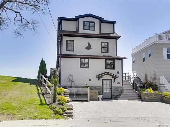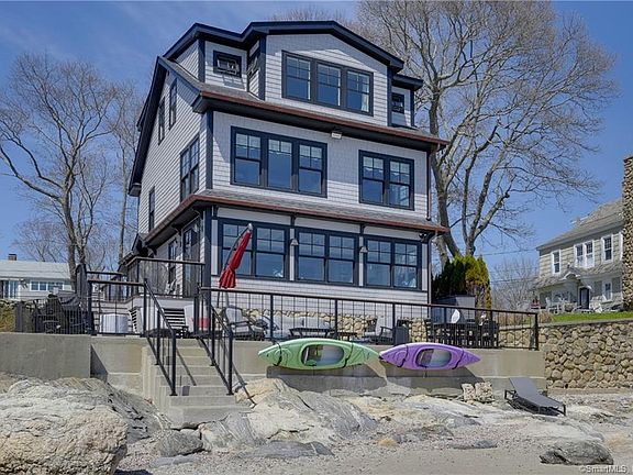 Breathtaking Waterfront Views abound at this Sensational Renovated Retreat with steps to the beach. Remarkable updates include all new Marvin windows, new roof, new concrete board shingle siding, new trek deck surrounded with stainless steel railings, copper gutters and new flooring throughout. Added living space was created on the third floor with new dormer windows and Microllam beams that can be enjoyed as a second family room or a primary bedroom suite. This space also has two walk-in closets and a new full spa bath. The bright and impressive living area is surrounded by a wall of windows styled with an impressive window seat plus remote blinds for all the windows. The gas stone fireplace adds warmth and styled with a custom Brazilian cherry mantel. The elegantly renovated kitchen shines with new cabinets, quartz counters, Thermador appliances, bronze light fixtures and glass backsplash. The dining area shares this space and is perfect for entertaining. The main level half bath is updated and hidden behind a vanity barn door. Additional windows have been added throughout the second floor and the full bath is remodeled plus a laundry with a new washer and dryer. There is Central Air on the main level, Mitsubishi split systems installed on the second and third floors. The lower level offers lots of storage space and a new half bath. Relax on the amazing decks with easy maintenance plus a hot tub and a beach out your front door Use of the Oak Grove Beach steps away