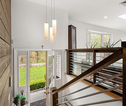 Peace and tranquility abound in this amazing sun drenched Raised Ranch with a flare of contemporary style. You are welcomed by a two story spectacular foyer complimented by a modern staircase and trendy accent wall. Enjoy the inviting open floor plan graced by gleaming hardwood floors. The large living room flows into the dining room, making it great for entertaining, and is crowned by skylights making this home very light and bright. The gathering place is sure to be the newly remodeled, fabulous kitchen, designed with the cook in mind. Gorgeous granite counters & stainless-steel appliances, center island with bar stools for hanging out near the cook. The main floor also has 3 bedrooms, and a spectacular bath with double sinks and a shower. Lounge on the expansive deck while viewing the breathtaking park-like backyard. Walk out lower level has a huge family room w/ fireplace, full bath, and a 4th bedroom or office for the ultimate multi-purpose living space. Newer Roof, Newer Windows, Newer Furnace And Siding. Additional amenities include convenient laundry room, central AC, oversized 2 car garage, and super fun bonuses including an extra wide paved driveway great for basketball, "street" hockey, summer outdoor entertaining and parties, and plenty of room for a play-scape too! HOME IS WHERE THE HEART IS - COME HOME TO THIS ONE OF A KIND MUST SEE!