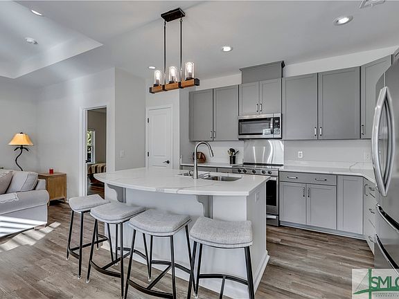 Welcome to this beautiful townhome located in the desirable community of Waterways in Richmond Hill, GA. This end unit INCLUDES A GOLFCART and is 80% FURNISHED. This home features an open concept floor plan with a spacious breakfast area and a kitchen island perfect for entertaining. With 3 bedrooms and 2 bathrooms, including a large primary suite with double vanity sinks, walk-in shower, and walk-in closet, there is plenty of space for relaxation. French doors lead to an office/flex space, ideal for those who work from home. Enjoy the convenience of a 2 car garage, large screened porch, and wooded backyard. Waterways offers residents access to a community marina and docks, restaurant, 5 miles of lagoons, tennis courts, walking paths, a kayak launch, fishing lakes, a dog park, community events, and more. Don't miss out on the opportunity to live in this golf cart community with all the amenities you could ask for.
