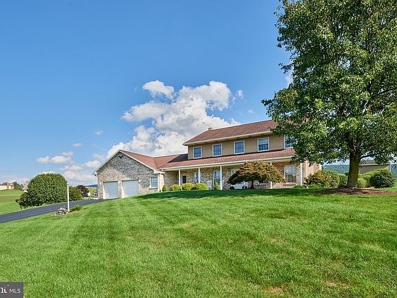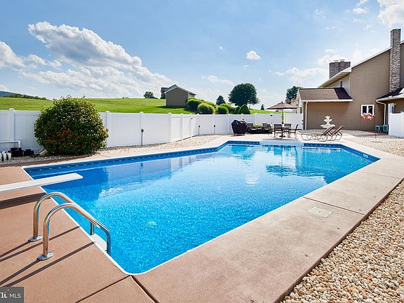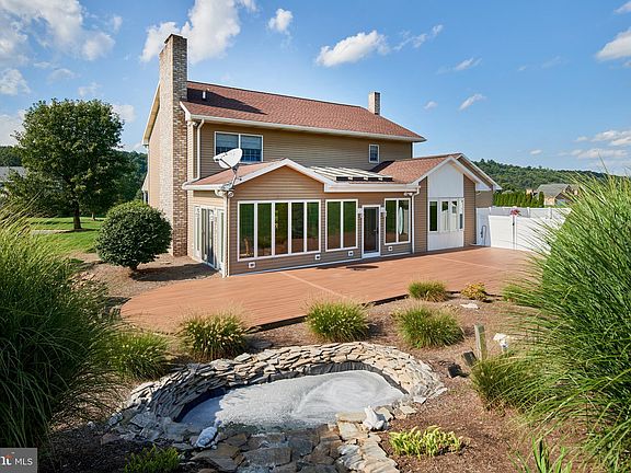 Quality Custom Built One-Owner Two-Story perfectly positioned on a professionally landscaped .97 acre lot in the picturesque Rolling Hills Estates subdivision, offering 360 degree panoramic views of the gentle, rolling countryside & neighboring mountain ranges. The perfect residence for spacious everyday living & for those who love to entertain, this beautiful property has it all. The attractive curb appeal & welcoming covered front porch greet you & lead you to 3 levels of living space delivering 4036 finished square feet. This meticulously maintained home delivers formal dining & living rooms, a bright & cheery eat-in kitchen with solid wood cabinetry, newer included appliances, breakfast bar & a darling dining area with a bump out bay window. French doors lead you to the sun-drenched sunroom where you will find a vaulted ceiling with beautiful exposed beams, skylights, walls of windows, charming exposed stone walls, tile flooring & doors that take you to Trex deck, gorgeous heated in-ground pool with large concrete patio, stone pond with tranquil water fall, truly a majestic back yard. Back inside discover the large family room with cozy floor to ceiling stone fireplace, main floor half bath & a super convenient first floor laundry/mudroom with included washer & dryer plus a handy sink leads either to an exterior door or to the oversized 2 car attached garage. The second floor boasts a relaxing owner suite with walk-in closet, private full bathroom where you will find a closet, soothing corner jetted tub, separate shower, dual vanity & tile flooring. There are 2 additional bedrooms & another full bath. The partially finished basement boasts a rec room, family room with propane fireplace, den, home office & unfinished space for storage. Additional highlights of this amazing home include 2 new heat pumps/2 zones, solid wood trim/doors through-out, new exterior light fixtures, new exterior doors, gutters/leaf guard system (2018), pool heater replaced in 2020, pool liner & pump replaced in 2015, wired for a security system, replacement windows (Anderson), Atlantic Broadband for high-speed internet & cable. Secure your very own slice of paradise.