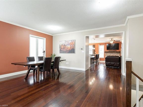 *Watch Virtual Tour* Charming well kept oversized raised bungalow boasts great layout. large windows & hardwood flrs throughout main flr. Open concept dining/sitting room flows seamlessly into family room w/ gas fire place & mantle. Combined w/ eat-in kitchen complete w/ ss appliances, breakfast bar & breakfast area, w/o to double pergola deck, hot tub & yard. Spacious bedrooms & laundry w/ garage access Complete main flr. Finished basement w/ Large living/dining area, above grade windows, pot lights, b/i speaker system, 2 good sized bedrms, full 3pc bath & kitchen. Steps Away from Tanners Drive Park, schools, Acton Arena, Close to ALL Amenities & Major Road