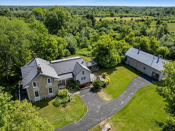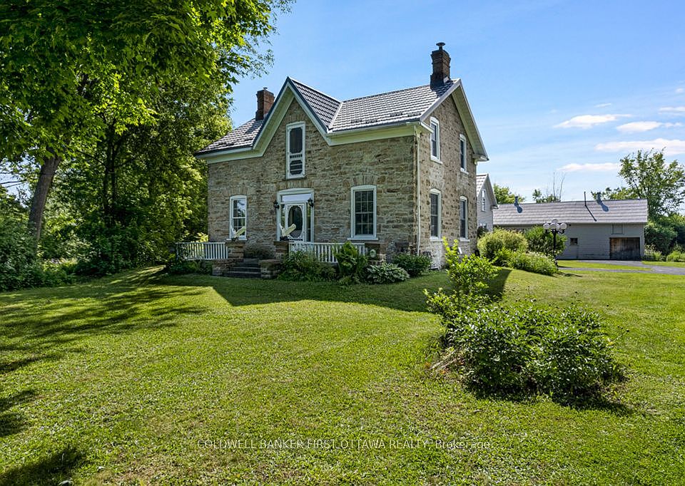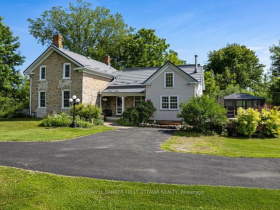 Set on a 1.88 acre estate on the edge of historic Perth, this 1875 stone home offers timeless charm, thoughtful updates, and room to grow. Lovingly maintained, the property blends the character of a true century home with a number of modern upgrades - most notably, a stunning chefs kitchen where a reclaimed altar from a local church has been transformed into the centerpiece island. Inside this home, you'll find three bedrooms and 2.5 bathrooms, including a beautifully renovated primary suite with a spa-like ensuite and a sun-filled bedroom that feels like a retreat. Hardwood floors, tall ceilings, and detailed finishes speak to the craftsmanship of a bygone era. A formal living room and separate dining room create a welcoming space for entertaining, while the cozy family room with a gas stove is perfect for quiet evenings at home. The living room has a wood-burning fireplace insert while the dining room features a second gas stove and a convenient pass-through to the kitchen, ideal for hosting and gatherings. Outside, you will find a large screened-in solarium and a hot tub on the back deck. A large barn offers a world of possibilities, whether you're dreaming of a workshop, studio, or a small flock of chickens. The home is currently on it's own well that provides excellent, pure water. Set well back from the street, this property offers a rare sense of privacy and country living, just minutes from the shops, restaurants, and charm of downtown Perth. A truly special home with a story to tell and plenty of room to write your next chapter.