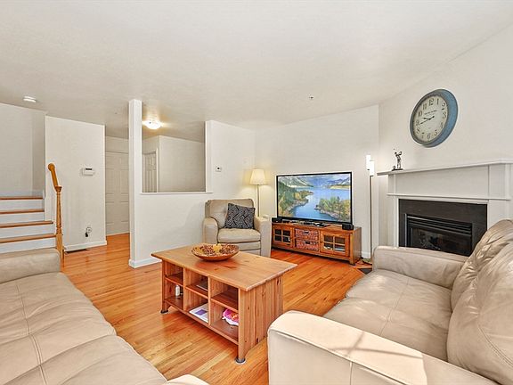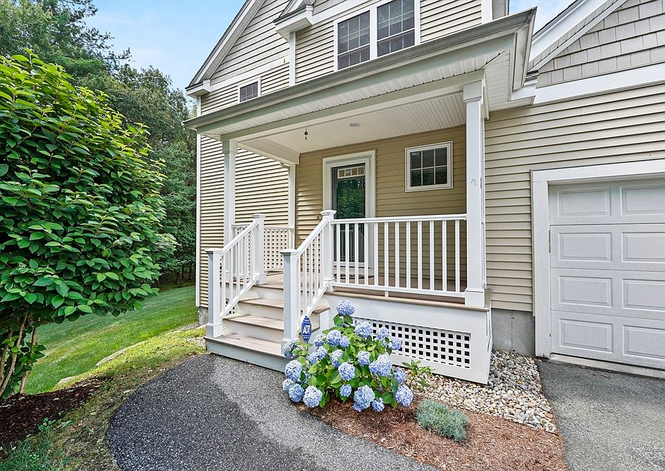Immaculate North-East facing end-unit townhome in the sought-after Southgate community, perfectly positioned on a beautifully landscaped cul-de-sac. Sun-filled and stylish, this home offers hardwood floors throughout the main living levels and sleek finishes throughout. A spacious foyer opens to a fireplaced living room with large windows and a slider to the private deck-ideal for relaxing or entertaining. Dining area connects seamlessly to a modern kitchen featuring stainless appliances, a gas stove, externally vented microwave and a tile backsplash. A convenient half bath completes the main level. Upstairs, find two generous bedrooms, including a primary suite with walk-in closet and ensuite bath, plus a versatile office nook and a second full bath. Lower level offers a sprawling carpeted family room with recessed lighting, office space, and access to the backyard. Enjoy a two-car attached garage and lush surroundings. Easy access to Rt 495 & other major routes, shopping & dining.