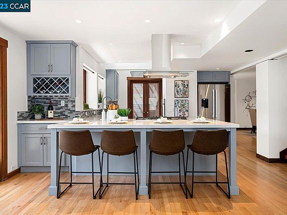 A tranquil gem located in the heart of Orinda with 4 bedrooms and 4 baths. This home boasts an open 2,780 sq ft floor plan with hardwood floors throughout. The vaulted ceilings with skylights stream sunlight into a spacious living room and newly-renovated gourmet kitchen with stainless steel appliances, pantry, and wine nook. The back deck overlooks a stream on the .5 acre lot, perfect for quiet summer dining or entertaining friends. An Au Pair/in-law suite with its own private entrance complements an already family-friendly living area. The house is located at the end of a cul-de-sac, and makes for a peaceful setting for kids to play or families to relax. An extra feature of this home is the oversized garage that can accommodate 3 cars. This home is conveniently located near restaurants, parks, walking trails, award-winning K-12 schools, BART, and HWY 24.