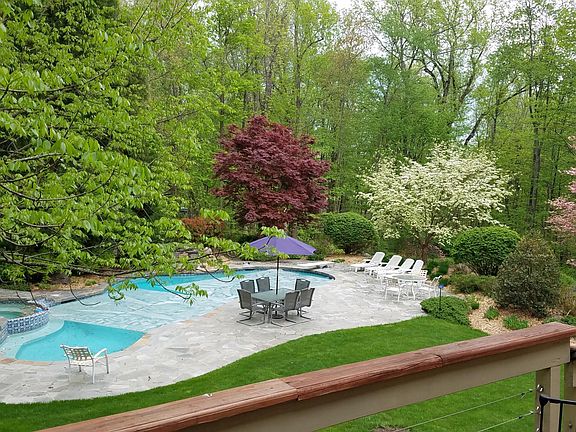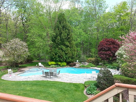 Perfect home for extended stays or corporate relocations. Better (and less expensive) than staying in a hotel long term! Rental is fully furnished (can be empty if requested). Lawn service is included. Utility allowance included. Rental rate will be discounted for stays longer than 1 month. Unfurnished is possible for longer term rentals. A modern resort-like home nestled in the woods yet minutes from everyday life! Our 4,200 sq. ft., 4BR, 3.5 bath home is for those who want the best! A gourmet eat-in kitchen with Thermador, Miele, and SubZero appliances opens open to our large great room which features 2 story windows, large screen tv, woodstove and seating for many. Our formal dining room is attached to the kitchen and has a large table with comfortable seating for 6-8 people. The Living Room is off the front entry and has a pool table, dart board and sliders to our deck. All bedrooms are good sized and the bathrooms are oversized. The master suite is very large and has a private bath with jacuzzi tub and sliders to our deck. There is a 2nd master bedroom with a private bath and 2 more bedrooms, a full hall bath and a bridge overlooking the living room on the 2nd floor. A large home office with several desks is attached to the master bedroom. Basement has a finished gym and craft room. Our 1,200SF raised deck overlooks a backyard that is as good as any resort with a free-form gunite pool, 8 person hot tub and waterfall. Bocci ball court. Badminton area. Gardens. Plenty of room to relax and enjoy. Rentals include entire house except for a portion of the basement. Woods all around, but only a few miles to NYC bus & train, shopping and restaurants! 1-6 month term available.