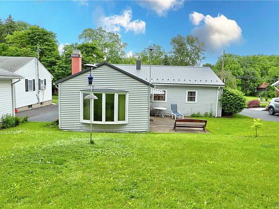 Welcome to this cozy three-bedroom, one-bathroom ranch home in the Western Gardens neighborhood of Geneva, NY. Nestled in the heart of the beautiful Finger Lakes region with 1,245 square feet of living space, including a living room, dining room and family room with fireplace this property offers a comfortable and relaxed living experience. The metal roof was installed in 2014, and the forced air furnace was recently replaced in 2023, providing peace of mind for the new homeowner. You will love the spacious backyard and patio.
