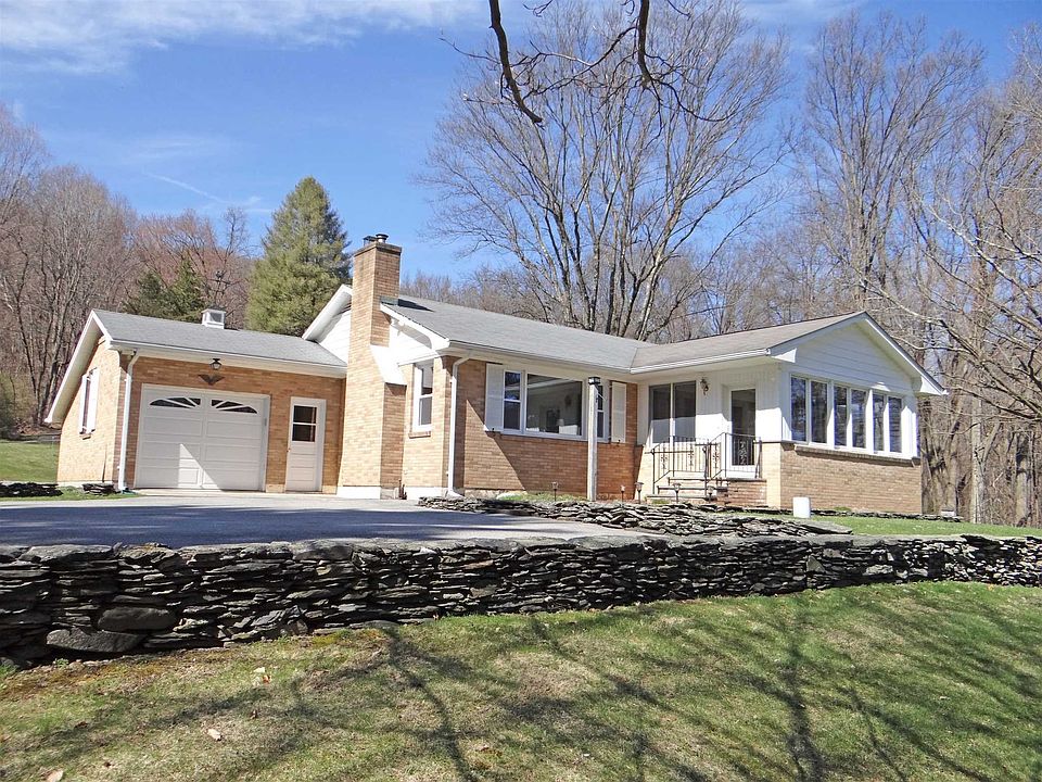 This single level home is nestled on a picturesque 3.1 acre parcel in the Town of Amenia. It has been lovingly maintained and offers a bright and comfortable style that is sure to delight you from the moment you enter the home. The eat-in-kitchen is spacious and finished with fine birch cabinetry. The sunroom is a fantastic room where one can enjoy the lovely views of the front yard. Tremendous light streams in through the large picture window in the living room and the fireplace with woodstove is very inviting. Three bedrooms, an office, a full bath, and an attached one car garage complete the floor plan. The laundry is located in the large basement and there is plenty of room for storage. Central air. Hardwood flooring. The park-like grounds are sure to please, featuring open meadows, lovely retaining stone walls and flower beds, and very attractive mature plantings. A period barn is perfect for small livestock, a workshop or those seeking studio space. Several other useful outbuildings, including a chicken coop, a potting shed, and an equipment shed, complement this delightful country property. Only a short drive to Route 22 makes it a very convenient location.