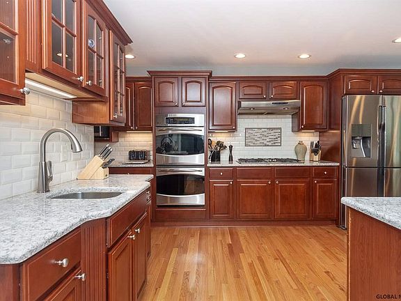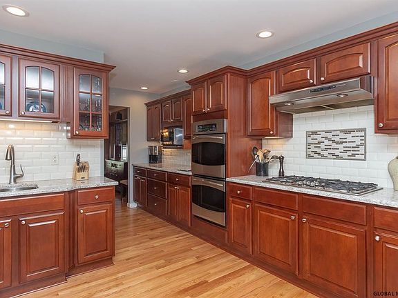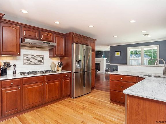 You simply cannot build this caliber of a home at this price in the highly rated South Colonie Schools. Absolutely meticulous and thoughtfully designed, this custom beauty is truly move-in ready. The gourmet kitchen features Cambria quartz counters, tile backsplash, undermount lighting, high-end appliances, prep sink, large pantry. On cooler days, cozy up by one of three gas fireplaces and in the summer, you're just steps away from your own private oasis. The incredible backyard features a heated salt water in-ground pool, stamped concrete patio, composite decks, pool house, fire pit, gorgeous landscaping, invisible fence and sprinklers both front and back. Enjoy 4 bedrooms and 3.5 baths including two ensuites, abundant storage, home office, basement rec room...Too many features to list!