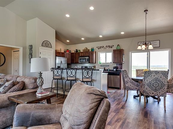 Looking for a little elbow room at an affordable price with a great house? This is it! 2.2 fenced acres, 1500 SF single level home with 3 bedrooms and 2 baths. Some great features include: open floor plan with vaulted ceilings, gas range, stainless steel appliances, pantry, large master bedroom complete with a walk-in closet and dual sinks in the bathroom. The 2 car garage has lots of built in shelving for storage + there's a storage shed that conveys. You'll enjoy relaxing and taking in the views on the back deck. The entire backyard is fenced!