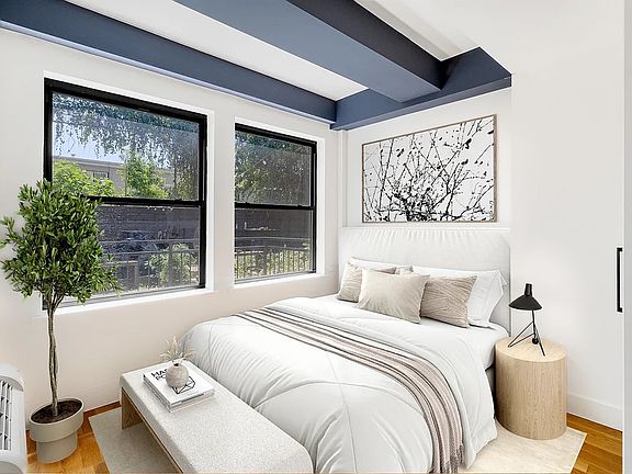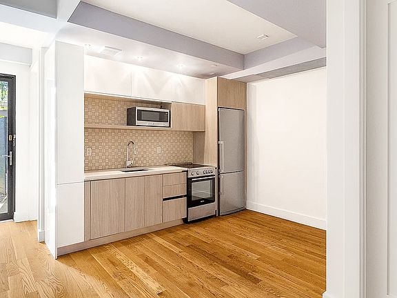 Huge Duplex 3BD / 1.5BTH Apartment with both Private and Common Outdoor Spaces and In-Unit Washer / Dryer! Situated in the back of the building and overlooking the small building backyard, this lovely home offers a private oasis in the heart of the bustling Bushwick. The kitchen is modern and spacious and includes a dishwasher, tons of cabinet space, and Ceasarstone countertops. The bathrooms feature floor to ceiling tiling, modern fixtures, and a deep soaking tub. Each of the bedrooms can comfortably fit a queen sized bed and more. Additional features include hardwood flooring, modern recessed lighting, AC units and in unit laundry. The building has a huge shared backyard that only a few units can access (this one included) as well as a rooftop with spectacular views of the Manhattan skyline. Embrace the vibrant neighborhood with Maria Hernandez Park just two blocks away, and an array of fantastic eateries and bars just minutes from your doorstep. Transportation is a breeze with the nearby M and L trains.