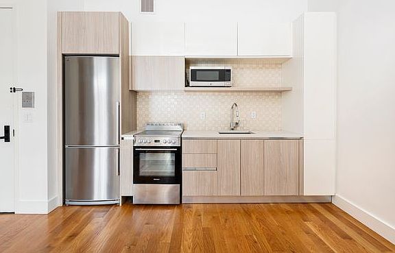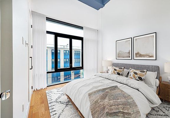 Newly built 2-bedroom with 13-foot ceilings in Prime Bushwick. This new-construction 2-bedroom, 1-bathroom apartment enjoys tremendous light from large windows under high ceilings. And open living area features a renovated kitchen, appointed with stainless steel appliances and Caesarstone countertops. Two even sized bedrooms face southwest with open views from this top floor apartment. Apartment 4F features a modern bathroom and recessed lighting throughout. Integrated split air conditioning units are included with the rental. On-site amenities include a share backyard, gym, laundry, and pet area. Please inquire about the pricing structure. Please note that some of the photos have been virtually staged.