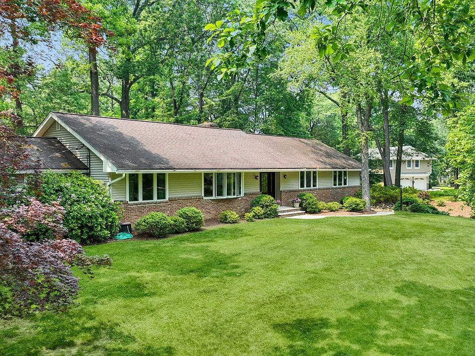 Welcome to 28 Stone Fence Road, a stunning 3bed+den 2.5 bath ranch in the highly desirable San Jacinto Neighborhood. Situated on a corner lot with 2/3 of an acre of lush landscape offering over 3,600 sq ft of space! This home features a bright & spacious living and dining room off the foyer, a gourmet kitchen w/ double oven, along with a breakfast nook. Off the south end of the home you'll find a bonus room perfect for office/bedroom. An additional family room with wood burning fireplace can be the perfect room for cozy winter nights or year round entertaining directly off of your deck & spacious backyard. The bedrooms are spacious, with a master bedroom with en-suite bath & jacuzzi tub. Head down stairs where you will find a massive 1,000 sq ft rec rooom already equipped with central ac & full central vacuum system, your laundry room & 2 car garage. Perfectly located only 1 mile from the Train Station & town center, close to Crestwood Lake & the highly desirable Schools.