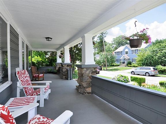 Curb appeal plus an easy commute! Walk to the train from this renovated and perfect sized Pelhamwood home which seamlessly blends Craftsmen details with today's updates. You will admire the airy floor plan from the moment you step in. A sun filled playroom, renovated kitchen, and original ceiling beams are some of the features of the generously sized first floor. Upstairs, a dreamy master suite with a dressing room and ensuite bath provides peace and privacy. Two more large sized bedrooms and a hall bath complete the second floor. The third floor offers two more rooms (one currently used as a home office and the other a bedroom) and a full bath, perfect for visiting family or an au pair. Of course there is central air and gorgeous hardwood floors throughout. The backyard is level, kid friendly, beautiful to look at and easy to maintain. On the weekends, walk to all of Pelham restaurants and shops and then relax on your front porch with some drinks. Welcome to Pelham!