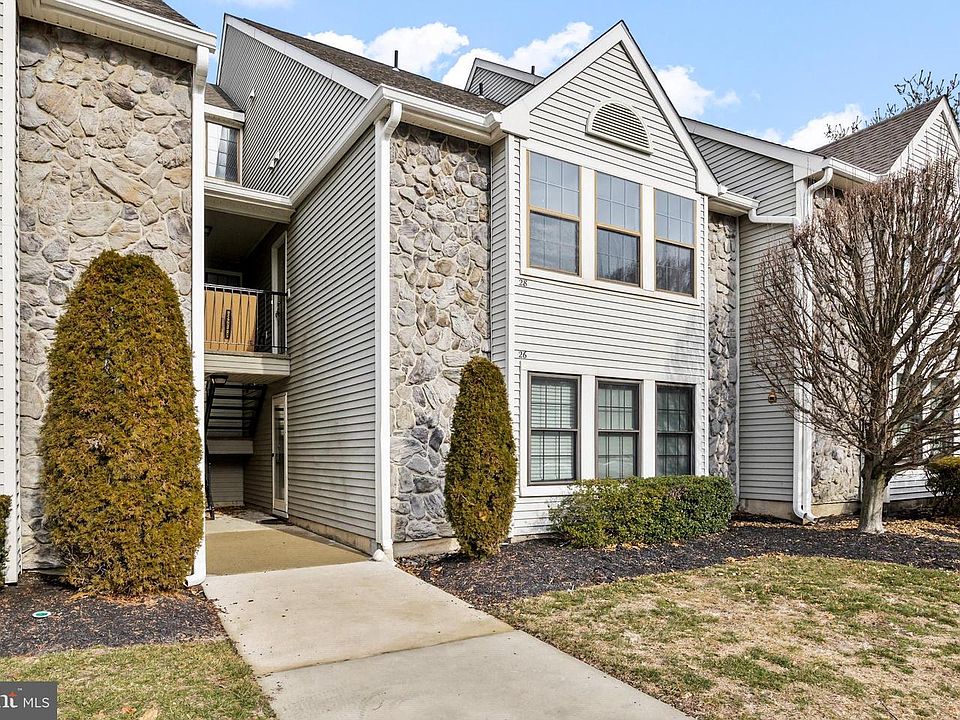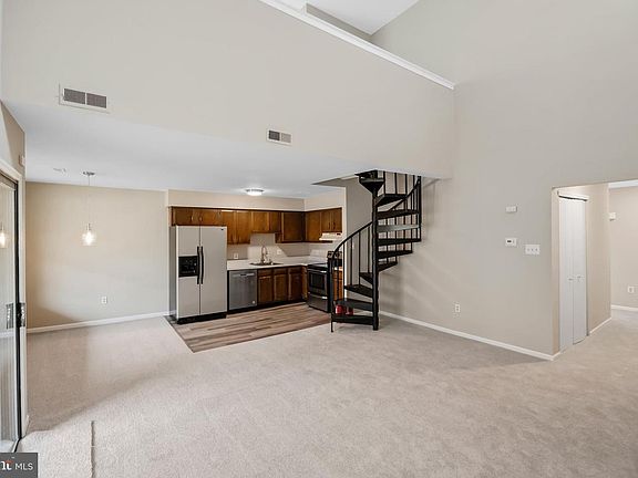 This 2nd floor condo is the largest model in Oak Hollow with 2 bedrooms on the first level and a loft. THE LOFT HAS a FULL BATH AND COULD BE USED AS A 3RD BEDROOM or Home Office. ACCESS to the LOFT is by SPIRAL STAIRS. There is also a 2nd private balcony off of the Loft. Freshly Painted and New carpeting & flooring throughout, newer stainless steel appliances. Open Great Room/Dining Room/Kitchen Design with dramatic spiral staircase to the Loft. Large deck on the 1st Level and private deck off the Loft. Wonderful Kings Grant location offering lakes, golf, bike/run/roller blade paved pedestrian paths. All this and minutes to major shopping and commuting routes to Philadelphia, New York and Baltimore Washington areas.