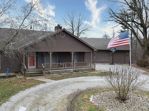 Truly a unique piece of country living right within Greencastle City limits. Home has a charming and private cabin feel, that sets farther back off the road. Enjoy morning coffee on your large covered front porch while inside, the cathedral ceilings with exposed beams and beautiful stone masonry wood-burning fireplace give the home an immediate warm and cozy feeling. Durable new laminate flooring adorns most of the main floor for easy cleaning and maintenance. In the kitchen there's plenty of warm wood cabinetry, hard surface counters complete with breakfast bar, and all new stainless steel appliances included in the sale. If you work from home, you'll just love the private home office space right off the main living area. Your primary suite features plenty of natural light, durable laminate flooring and a spacious walk-in closet. The second bedroom is also located on the main floor and upstairs, you'll find a third bedroom that would be perfect to double as a den or flexspace. You'll also find your laundry room on the main floor complete with washer and dryer included in the purchase. Step out your rear sliding glass doors and enjoy a seat in the screened in porch - or step over into the sunroom and enjoy a dip in your private, indoor hot-tub. The back yard is just perfect for entertaining friends and family, complete with a firepit, and above ground swimming pool with wrap around deck. Home also features a 3 car garage for all your parking and storage needs.