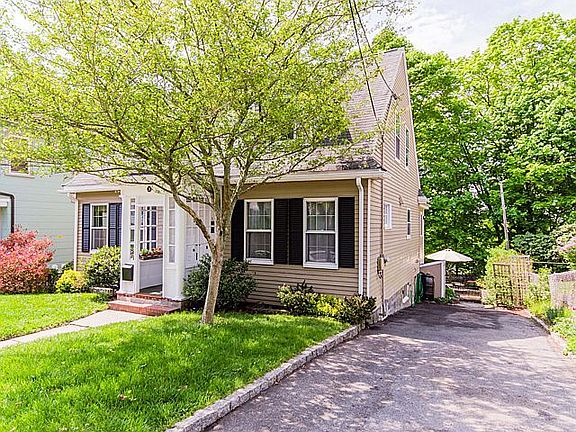 Come enjoy the peaceful neighborhood and gorgeous sunsets from this 3 bedroom, 1.5 bathroom Cape nestled within the trees on top of Sunset Hill. First floor features formal living and dining area with brick fireplace, bedroom or office, newly renovated kitchen with painted cabinets, granite countertops, a breakfast bar and stainless steel appliances, 1/2 bathroom, and expansive 15' ceiling family room addition with gorgeous sunset view and small balcony. Upstairs boasts two generously sized bedrooms with plenty of storage space, closet built-ins, and a newly renovated bathroom with high ceiling, skylight, double Kohler sinks, granite countertops, subway tiled shower and built-in shelving. Bonus room at garden level, accessible from a staircase from the family room, is part of a finished basement addition with plenty of windows and sun, and walks out to the perfectly manicured, landscaped backyard with incredible privacy and pavered patio and BBQ area. Long driveway can accommodate 3 cars. Recently updated with high velocity A/C, this home is a haven for a small family or couple and is within walking distance to the Bellevue commuter rail stop and accessible by bus to the Forest Hills MBTA station. Conveniently located near the beautiful Arnold Arboretum, Jamaica Plain restaurants, Roslindale Farmers Market and Roche Bros grocery store.