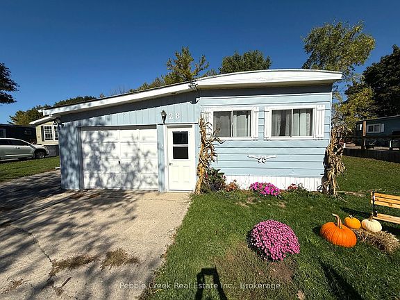 Welcome to The Village! Attractive mobile home with several additions including attached garage and workshop, located just minutes north of Goderich in Huron Haven! This well maintained home is bright and cheery and has seen numerous renovations including replacement windows, paint and flooring. There is also a newer water heater and propane furnace. Features include a spacious eat-in kitchen with an abundance of cabinets and updated pot lighting in the ceiling, large dining/living room, a cozy den, 2 bedrooms and a bathroom with jet tub and laundry. Outside, there’s paved parking for 2 vehicles, and a walkway leading to a covered deck, spacious open deck and workshop access. This is a wonderful opportunity to own your own home in a quaint land lease community with new rec center and pool, close to shopping, golf courses and the shores of Lake Huron! Bonus – double-wide fridge, stove and washer/dryer included! Call your REALTOR® today for a private viewing!
