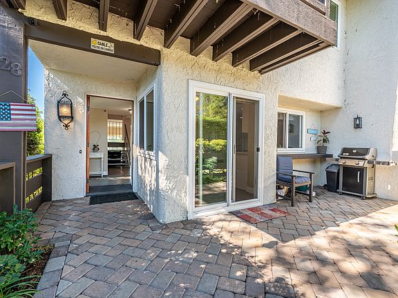 Discover this elegantly updated, light-filled end-unit townhome, perfectly situated on a quiet cul-de-sac within the prestigious, guard-gated community of Rolling Hills Estates, known as The Terraces. Residents of this exclusive HOA enjoy resort-style amenities, including five sparkling pools and relaxing spas, tennis courts, a playground, and a clubhouse equipped with a kitchen. The home features three spacious bedrooms and two and a half bathrooms, complemented by an oversized two-car garage, an additional two-car driveway, and convenient proximity to guest parking and an expansive park-like grassy area. Step inside to find wood laminate flooring throughout the main level, new carpeting, and freshly painted interiors. The bright living room is highlighted by a cozy fireplace and full-length French doors that open onto a wraparound balcony. The open-concept dining area adjoins a kitchen complete with granite countertops, elegant wood cabinetry, an electric cooktop, a wall-mounted double oven, and abundant storage. The breakfast nook, bathed in morning light, opens via a sliding door to a welcoming front patio. Upstairs, plush carpeting leads to the spacious master bedroom, featuring vaulted ceilings, two walk-in closets, and a remodeled en-suite bathroom with a soaking tub, separate shower, and dual-sink vanity. The guest bedrooms share a full hallway bathroom and access to a shared balcony. Enjoy the convenience of being within walking distance to shops, parks, and Ridgecrest Intermediate School, making this townhome a perfect blend of comfort, luxury, and location.