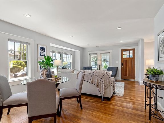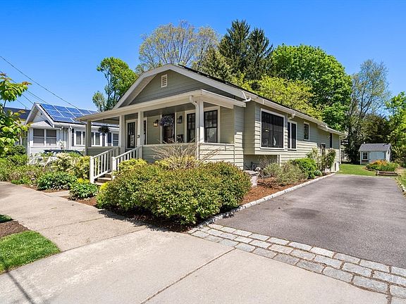 The family moved in and thought that this would be their home for 5-7 years, but they loved the Bungalow style, one level living, bright open floor plan, welcoming front porch, neighborhood parks, proximity to restaurants & shops, Mass Pike & Rt. 128, Charles River Bike Path, and the Franklin elementary school and they stayed for 14 years. They improved the home with environmental sustainability in mind, including insulated Pella® windows, solar panels, Navien® direct vent hot water heater & rain harvesting cistern for irrigation. The home features an updated kitchen and bathrooms, 1st floor primary suite with cathedral ceilings, ensuite 2021 renovated bathroom, 2 additional bedrooms, closet systems installed in all bedrooms, separate side entrance providing a mudroom area, and versatile lower-level family room/guest bedroom with ensuite bathroom and separate laundry room. The beautifully landscaped yard, with bluestone patio is wonderful for entertaining and outdoor enjoyment.
